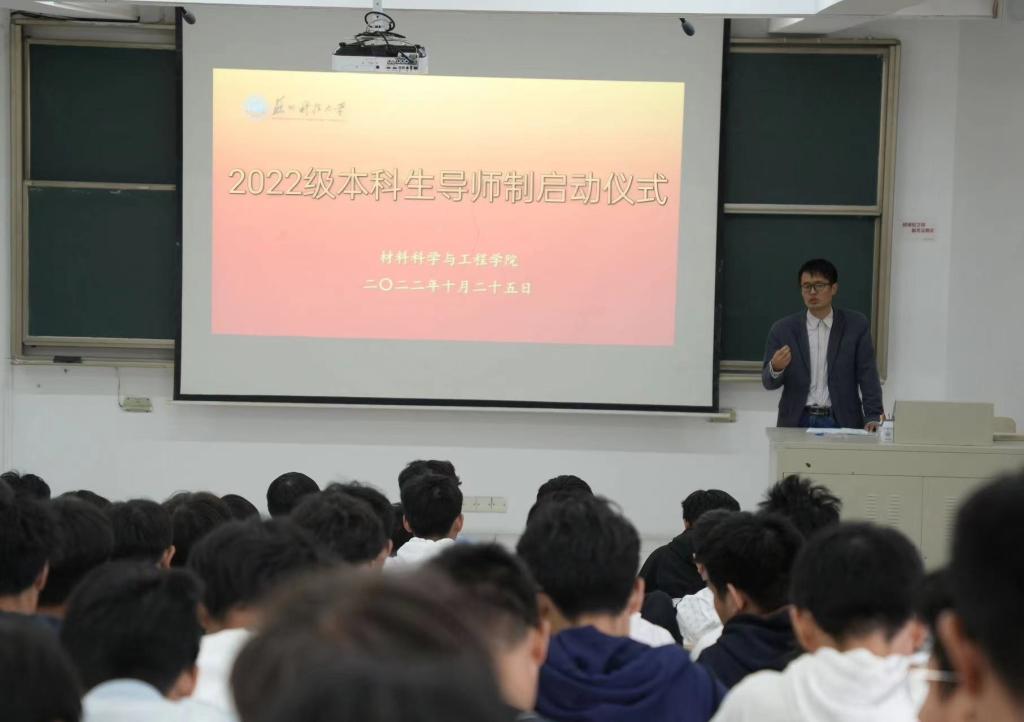 学院紧紧围绕立德树人根本任务,坚持“以本为本”,强化本科教育在人才培养中的核心地位,于2021年全面推进本科生全员导师制,全力打造一流本科教育,提升人才培养质量。杨晓刚教授介绍了学院本科生导师制的工作要求和实施方案,强调导师要对学生进行思想引导、学业督导、专业辅导、生活指导。青年导师代表赵梦迪老师发言并寄语同学们要追求理想、明确目标、正确对待学习和生活。江苏省“优青”卢豪副教授以“时间,一场美妙的旅途”为题,分享了求学、成长的历程,鼓励同学们不要困惑于一时的困难和逆境,找到支点,持续努力,相信时间的力量。新生代表纪熔炎同学作表态发言,将牢记习近平总书记在党的二十大报告中对青年的期待,立志做有理想、敢担当、能吃苦、肯奋斗的新时代好青年。